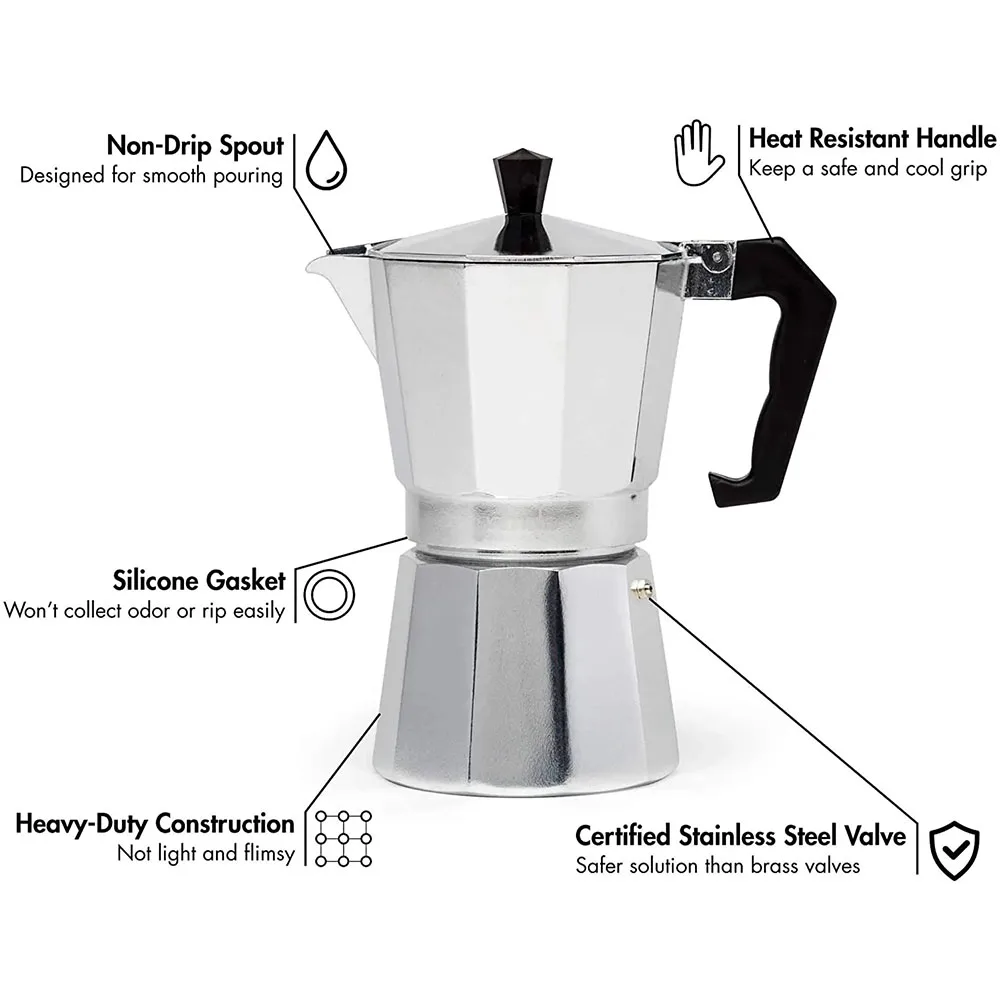 Made of durable aluminum alloycoffee kettle, moka pot, aluminum coffee, camping coffee, travel coffee, tea pot, outdoor coffee, home coffee, office kettle, Italian coffee, portable coffee, espresso pot, coffee maker, camping gear, tableware